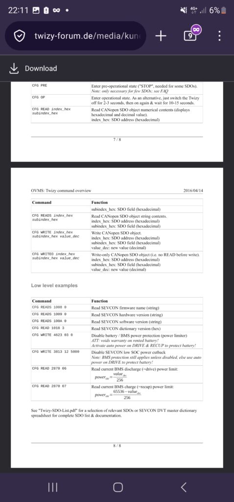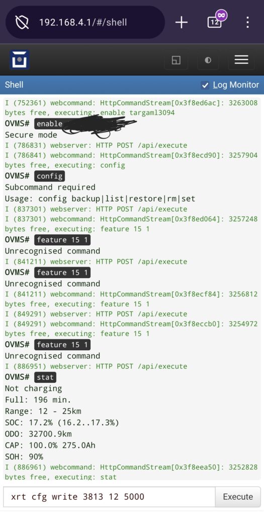 J’ai écrit cet article parce que cela fait plus de 6 mois que j’essaie en vain de désactiver la limitation de puissance sur batterie faible du Twizy et que cela est impossible à faire via l’interface web graphique de l’OVMS. Voici comment !